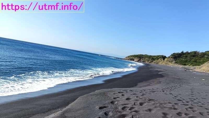 東京都の伊豆大島。白い砂浜じゃなくて、黒い砂浜(砂の浜)